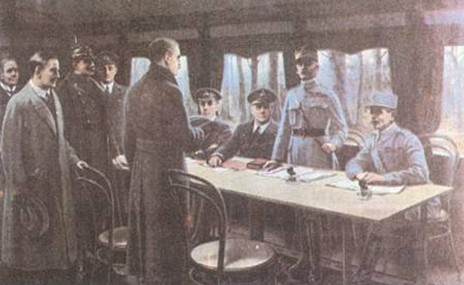 法国魏刚将军(右)和福煦元帅(站立者)