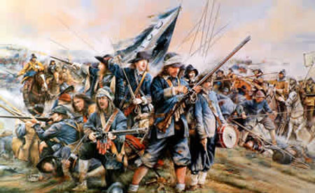 1645年6月14日,英国内战中的纳西比会战爆发。鲁伯特亲王率领的1.2万王军在战役初期一度占据优势,斐尔法克斯指挥的1.5万议会军则一度节节败退。但是克伦威尔指挥的“新模范军”在关键时刻扭转了战局,以骑兵突击的方式将王军彻底击溃。议会军打死王军1000余人,俘虏5000余人,该战役成为英国内战的决定性战役。