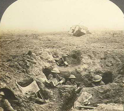 1917年11月20日,康布雷战役打响。当日,英军将多达476辆的坦克集中部署在12千米宽正面,发起了空前规模的进攻作战,一举突破了德军三道防线,在战役初期获得了巨大胜利。但随后德军发起反攻,重创英军后收复了大多数阵地,双亡各阵亡4.5万人左右。