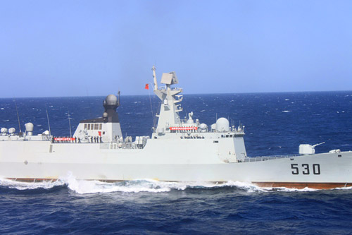 《国际先驱导报》文章 原本在亚丁湾水域的“徐州”号导弹护卫舰几天前穿越苏伊士运河进入了地中海,开始为运送自利比亚撤离的中国公民的中外籍商船提供护航。