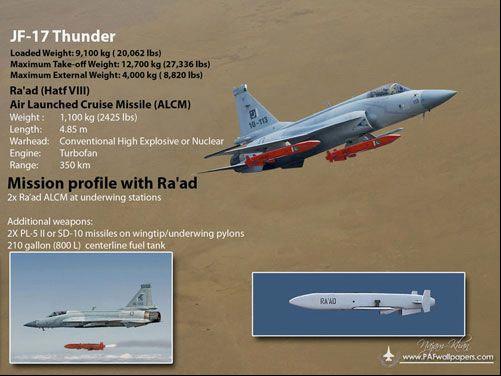对地攻击武器方面,机上装备有中国LS-6卫星制导炸弹(由500千克航空炸弹改进而来,滑翔距离60千米)、巴西MAR-1反辐射导弹(弹重274千克,战斗部重90千克,射程60千米)、巴基斯坦自产的“哈法”反跑道炸弹(弹重200千克,战斗部重100千克)、H-2/4型滑翔炸弹(H-2弹重980千克,H-4弹重1200千克,滑翔距离130千米)以及“拉阿德”(又名“哈塔夫”-Ⅳ)空射巡航导弹(射程350千米)。