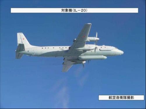 据统幕监公布的消息,俄IL20侦察机2日从俄远东基地起飞后,沿日本海上空日本领空识别圈南下,飞行期间曾一度接近日本海一侧日领空。俄军机在飞至日本能登半岛附近空域后折返。鉴于俄军机有可能进入日本领空,日空自战机4日紧急起飞进行跟踪监视。