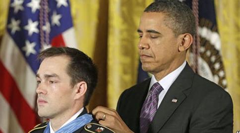 据外媒报道,美国总统奥巴马11日为一名指挥击退塔利班武装分子攻击的退伍军人颁发了美国嘉奖英勇战绩最高军事奖章“荣誉勋章”。