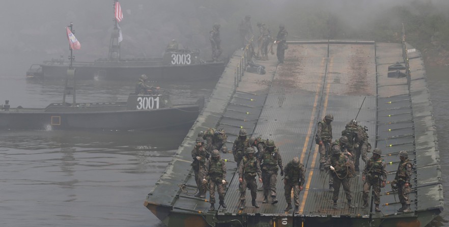 • 美韩举行渡河实战演习 硝烟弥漫场面壮观