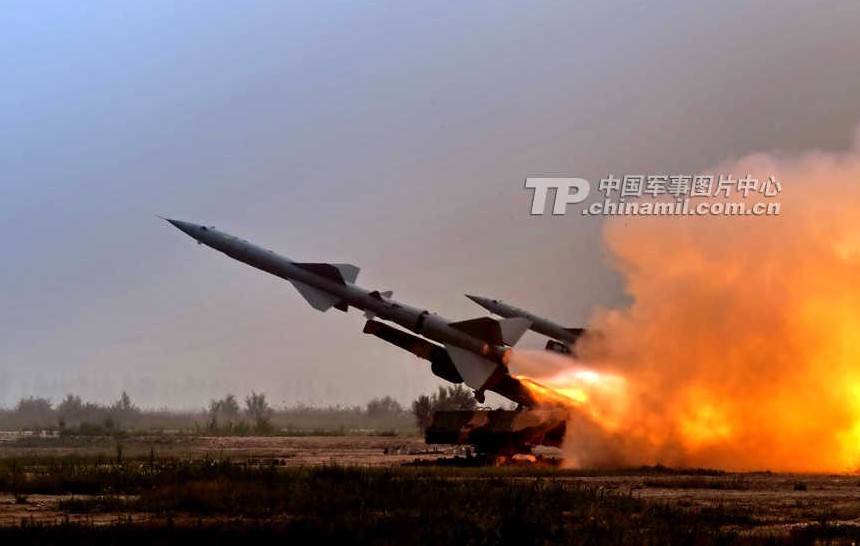 解放军红旗2改型防空导弹齐射攻击