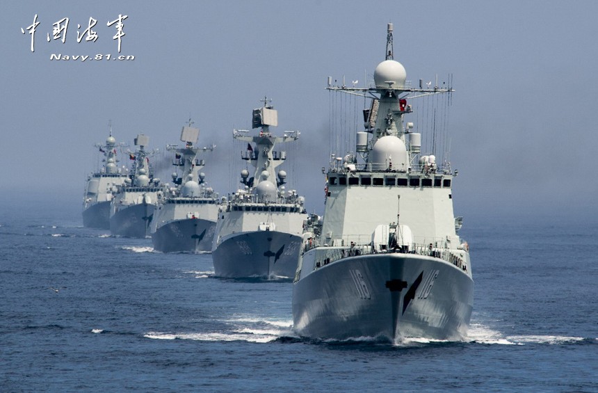 7月10日下午3时许,成功完成实弹射击的中俄双方舰艇在演习海区进行了气势宏大的海上阅兵式。中俄两国海军13艘参演舰艇以及3架固定翼飞机,在雄壮的军乐声中排成单纵队,依次从海上、空中通过俄太平洋舰队旗舰“瓦良格”舰,接受了中俄两国联合导演部总导演的检阅。