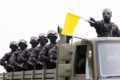 2009年5月15日,马英九前往台湾海军查看海军陆战队训练