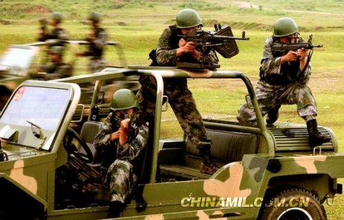 资料图:解放军空降兵驾轻型突击车快速机动