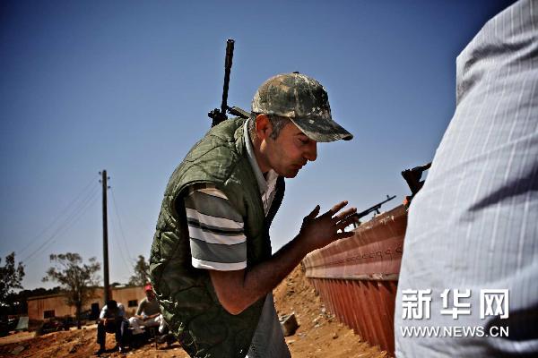 6月9日,在利比亚的米苏拉塔前线,反政府武装人员在掩体后观察政府军动向。北约近日加大了对利比亚的空袭力度,7日对利比亚领导人卡扎菲曾经居住的阿齐齐亚兵营进行了重点打击,造成许多房屋和基础设施损毁。利比亚电视台7日播出了利比亚领导人卡扎菲的讲话录音,卡扎菲说,尽管国际舆论要求他下台的压力不断增加,北约对的黎波里的轰炸更加频繁,但他“绝不屈服,也不会投降”。