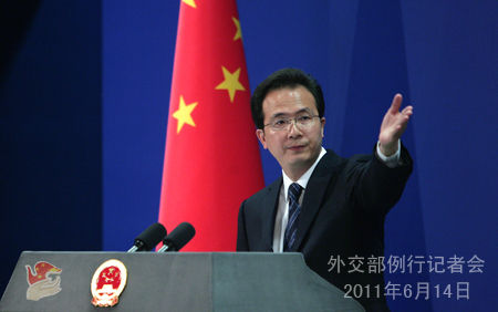 2011年6月14日,外交部发言人洪磊主持例行记者会。