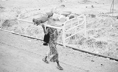 联合国称苏丹中部地区冲突已造成数万人流离失所。图为一名女子顶着一些物品走在苏丹中部阿卜耶伊的街上。
