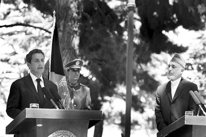 12日,萨科奇在阿富汗出席联合新闻发布会。
