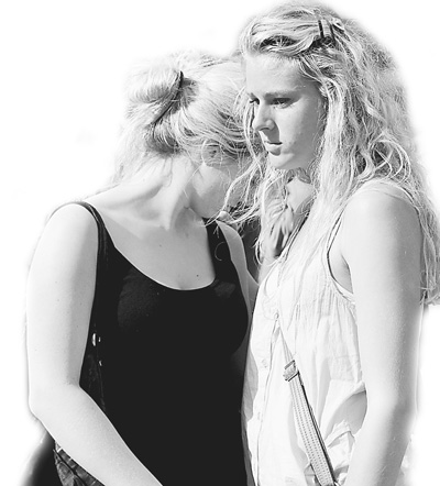 两位女孩在挪威政府大楼前献花后悲伤落泪。