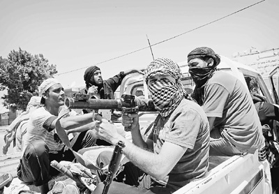 8月18日,利比亚扎维耶的反政府武装人员在巡逻。