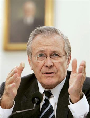 拉姆斯菲尔德曾经在福特总统任内及布什总统任内担任美国国防部长,最近出版回忆录《知与不知》。他在美国智库“传统基金会”接受基金会总裁福讷访问时谈到了这本回忆录。