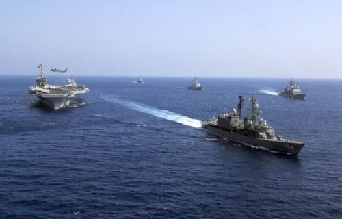资料图:参加联合军演的美日联合舰队。