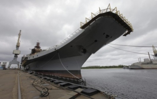 资料图片:正在进行改装的俄“戈尔什科夫”号二手航母