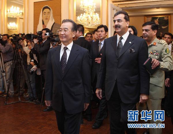 2010年12月17日,中国国务院总理温家宝在伊斯兰堡与巴基斯坦总理吉拉尼举行会谈。 这是双方步入会谈厅。