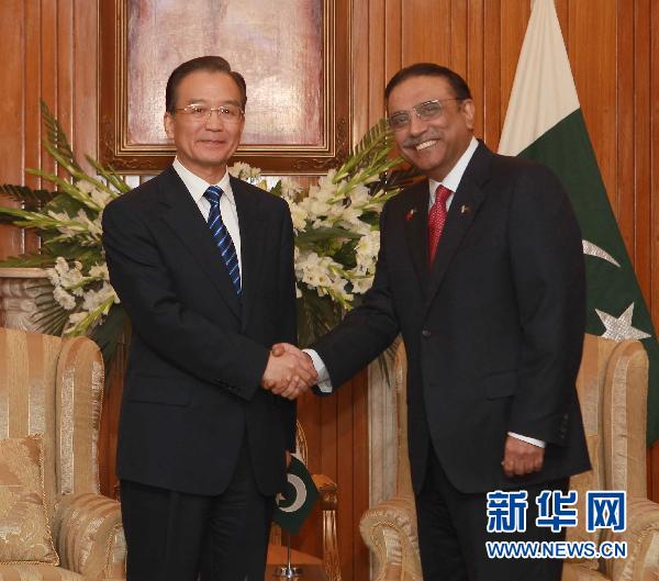 2010年12月18日,国务院总理温家宝在伊斯兰堡会见巴基斯坦总统扎尔达里。
