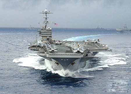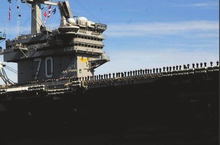 东北亚风云紧急声中,在“乔治·华盛顿”号之外,美国再宣布派遣核动力航母“卡尔·文森”号战斗群,浩浩荡荡驶往西太平洋巡弋。这是该航母五年来首次前往西太平洋海域。同行的还有美国最新的“宙斯盾”驱逐舰“斯托克代尔”号,并配属了其他飞弹巡洋舰、飞弹驱逐舰等。