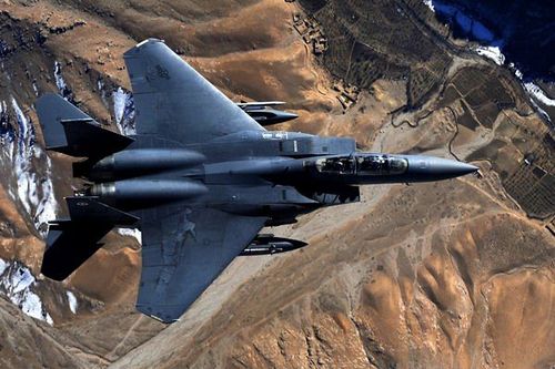 资料图:阿富汗上空执行空中支援任务的F-15E战斗机