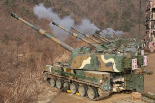 资料图:韩国陆军K-9自行榴弹炮齐射