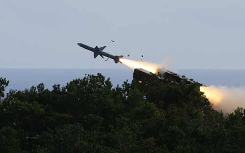 据“中央社”报道,台军“联合防空火力实弹射击测考”18日上午于屏东九鹏基地登场,为近年最大规模的公开导弹演习,