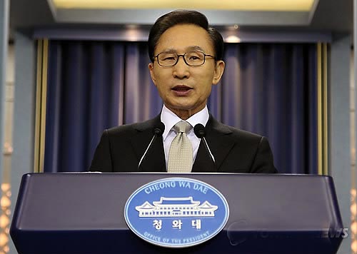 韩国总统李明博21日下午在青瓦台发表谈话,表示:“我军在艰难的情况下完美地完成了作战任务,我在此予以鼓励和赞赏。”