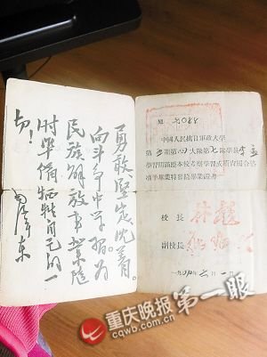 昨天,记者来到李老家中,见到了这张中国抗日军政大学的毕业证。