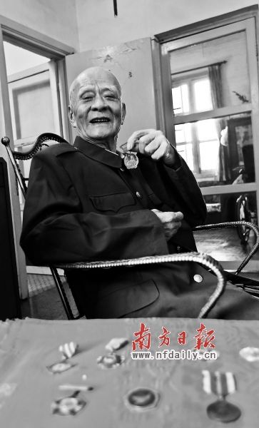 王务耆老人用颤抖的手抚摸着自己用生命换来的军功章,轻描淡写地说:“都过去了,这是荣誉,更是历史。”