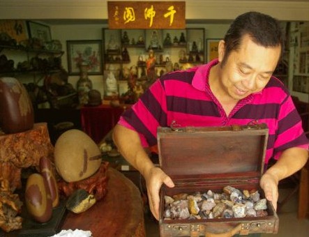 踏进湖南退伍军人王利民家的车库,就如同走进一座奇石博物馆。多年来,王利民跑遍湖南各地,搜集了1万多块奇形怪状的石头。他将这些奇石按照红色经典、人生百态、山水情怀、动物世界等几大主题进行分类,并给每块石头都起了名字。每拿出一块石头,王利民都能讲出一段关于这块石头的收藏经历。在王利民眼里,每块石头都蕴含着大自然所赋予的深刻哲理。王利民收藏奇石的爱好也得到家人的支持。2004年,王利民的儿子为他注册创办了湖南奇石网,作为送给父亲47岁生日的一份礼物。王利民表示,他希望能借助湖南奇石网弘扬奇石文化,如果以后有可能的话,他还希望建立一个奇石博物馆,让更多的人看到自己的藏品。