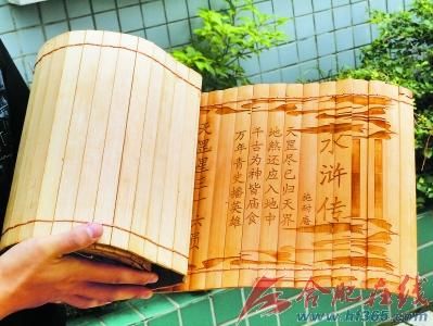 “一次我和朋友去一家农家乐吃饭,这家农家乐非常有特色,桌子、椅子、地板和盘子等等都是用竹子做成的,但当我们点菜的时候菜单却是纸做的,当时觉得非常遗憾,也从这时起萌生了从事竹简雕刻的想法。后来慢慢涉足这个行业之后发现市场还是挺大的,便开起了竹雕店。”老何说,由于对竹雕行业毫不了解,他只得花费常人数倍的时间去钻研,买书、向朋友请教、上网查资料,和同行切磋……只要是能让自己掌握竹雕技术的,他便积极去做。功夫不负有心人,经过几个月的努力,他通过自己的实力实现了水浒竹雕的素材搜集、排版以及雕刻,而且整个过程一共只用了半个多月。