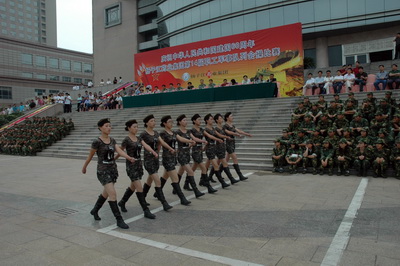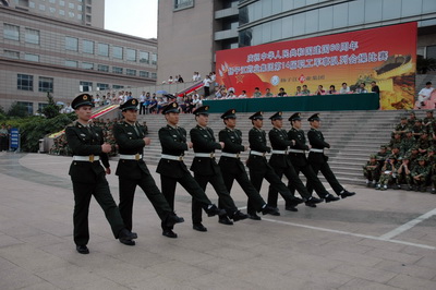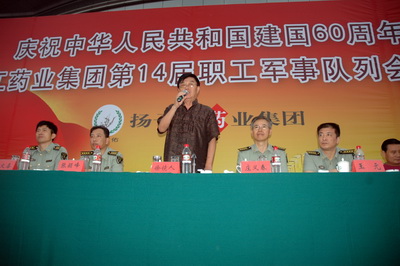 中国老兵网讯 沙场点兵,号声嘹亮。国庆前期,扬子江药业集团杏林广场上,“一二一”的口令声和“一二三四”的口号声此起彼伏,这是该集团第14届职工军事队列会操比赛的情形。在建国60周年之际,扬子江人以一种良好的精神风貌和军训成果,接受部队首长和集团领导的检阅,向建国60周年献礼。泰州军分区政委庄义春、扬子江药业集团董事长徐镜人等观摩了比赛。
