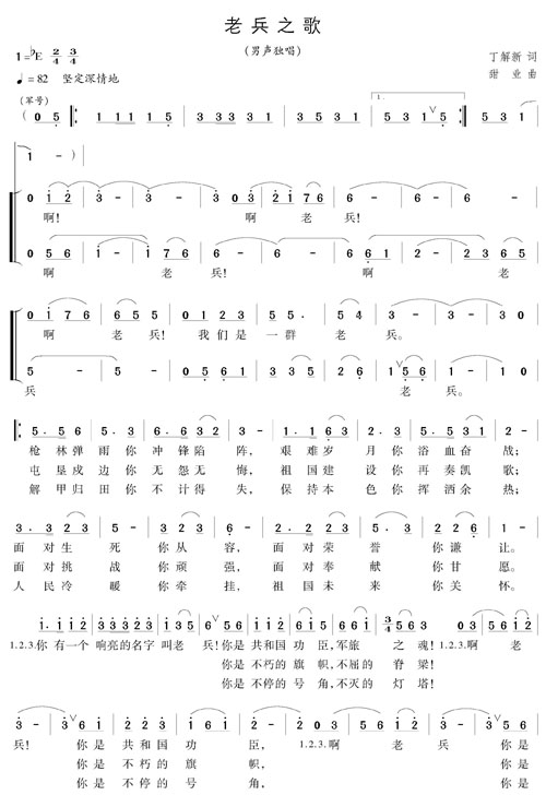 经过这次会晤,《老兵之歌》词曲已定稿,“啊!老兵!我们是一群老兵……你有一个响亮的名字叫老兵!……”优美的旋律即将响彻在祖国大地!