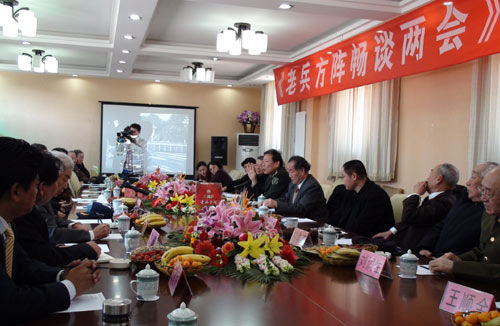 罗援将军首先介绍了“老兵方阵”提案的形成过程。有关部门曾有过对开国将帅受战伤情况的统计:刘伯承元帅受伤最重,徐海东大将受伤最多,罗炳辉、余秋里将军失去了一只胳膊,粟裕大将去世时头颅里还带着三块弹片……,是“弹片”触发了他的灵感,给了他写提案的冲动。他向老将军、老军人们代表介绍了今年参加“两会”的感受,认为关注民生,坚持科学发展观是“两会”最大的主题和关注点。今年他的提案,有关纪念抗日战争胜利65 周年、抗美援朝60周年,如何对群众进行爱国主义教育,以及通过立法保障现役军人转业军人权益等等。罗援将军的发言引起与会老军人代表的强烈共鸣。登上“浴血奋斗”彩车的原总参防化部部长姜志增少将,1940年才13岁就参加山西“百团大战”战斗、今年83岁的孙明将军,曾被评为华东军区一级战斗英雄、胸前挂满奖章和勋章的王顺全,还有导演过《血战台儿庄》和《大决战》的杨光远等先后发言。