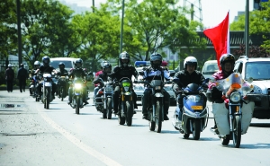 当天早上9点,莲石路上,一个由17辆摩托车和一辆金杯车组成的车队格外引人瞩目。这些摩托车爱好者是看到车迷论坛中《有个抗战老兵想去门头沟》的帖子后,自发前来为老兵护航的。“我今天早上5点就起来了,先把车洗了,又挂上了这些小葫芦,就图能让老人高兴高兴。”金杯车司机付师傅在车上悬挂了一圈各种颜色的小葫芦,车行驶时轻快地敲打着车窗。