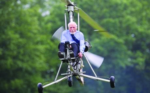 英94岁二战老兵肯恩·沃利斯希望驾驶着自己制造的双旋翼飞行器,以每小时140英里的速度,飞行3公里,以创造一项新的吉尼斯世界纪录。