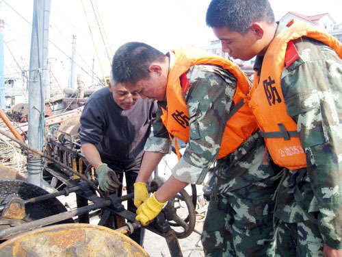近日,莆田边防船艇大队临退老兵带着机械维修工具箱来到港口、码头等渔船民集中地,帮助渔民解决渔船上出现的机械故障。