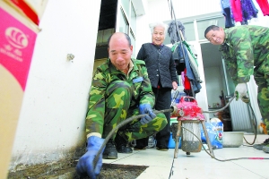 月初的一天,张喜忠一大早就接到电话:徐庄社区张大妈的平房厕所又堵了。工人都已经出门,张喜忠二话不说,跨上摩托车直奔社区。