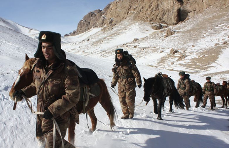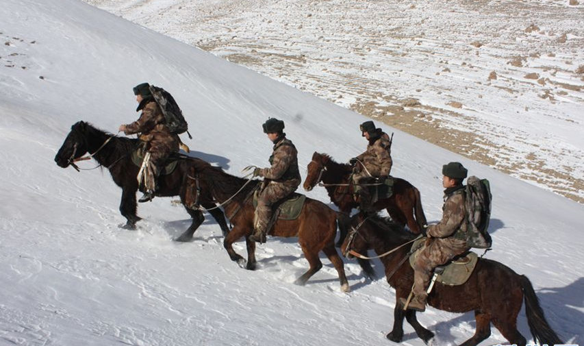 11月24日下午15时,驻守天山脚下的南疆军区某边防团契恰尔边防连的蹲点党员干部与退伍老兵前往海拔3900米的某点位巡逻。连队距离巡逻点30多公里,由于道路艰险,只能以徒步和骑马的方式完成最后一次巡逻。