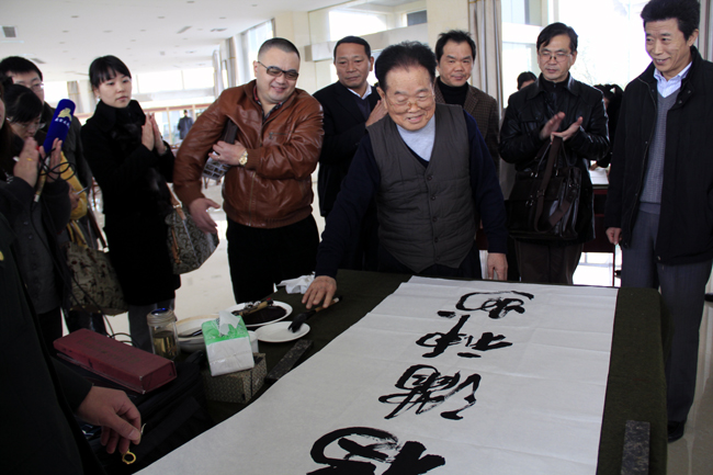 中国老兵网讯 12月8日,来自全国各地的30多位知名书画家齐聚一堂,参加在南京溧水大金山国防园举办的中国“福”书法作品大赛。南京军区原副司令员郭锡章、江苏陆军预备役高射炮兵第一师参谋长傅继臣、江苏省文化艺术研究院院长晁岱健、江苏省青年书法家协会主席刘灿铭等参加了活动。