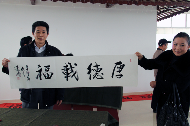 活动中,南京军区原副司令员郭锡章挥毫“福满神州”四个大字博得全场喝彩,“国防福地”更是对大金山国防园寄予厚望。