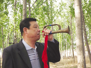 他叫段秀清,是上世纪八十年代初的一名老兵,当年在部队做文书工作时,与号兵住在一起,在与号兵的接触中学到吹奏军号的知识,并从心里产生了军号情结。闲暇之余,他除了熟悉军号的乐谱外,还会向司号员学习吹奏技巧,练习吹军号。