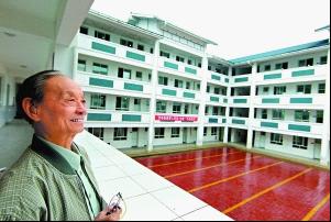 上世纪90年代捐建的学校,因汶川地震受损,当地政府已迁址重建,为了记住两位老人的大爱,学校门口依然悬挂“晨阳希望小学”的牌匾。这是陈荣超首次参观新校园,4层U字形教学大楼,塑胶跑道,学生宿舍楼,还有教室传出的朗朗读书声,陈荣超看不够、听不够。