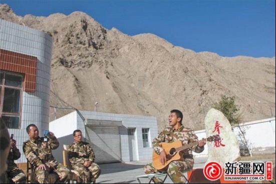 10月29 日,阿振走入了喀什边防支队库地公安检查站,为常年驻守在平均海拔3800 米以上昆仑山腹地的边防战士们送去了他的歌声和一个退伍老兵对部队的深情。