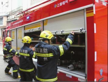 首次出警4分钟内赶到现场上午11点30分,火警铃声突然响了。