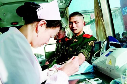 12日,武警十堰市郧县中队即将退伍老兵正参与献血。当日,该中队组织即将退伍老兵开展“义务献血、为第二故乡再作贡献”活动,20多名即将退伍老兵为市中心血站献血1万多毫升。