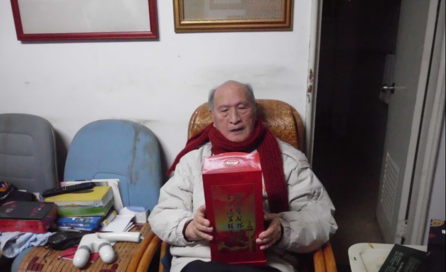 一个小时的车程,到了爷爷位于台北市中心的家,爷爷自己正在玩扑克,跟爷爷拥抱后,没想到爷爷第一句话就是问中国老兵网的季总过得好不好?我把由南京一路高歌文化传媒有限公司第一分公司独家生产和销售的中国老兵酒送给爷爷,爷爷又问,季诚现在又做酒了吗?说着把宣传册拿过去,带上眼镜,找出放大镜仔细地看着,说,“乖乖,你们的酒还在泸州和茅台镇生产啊,那两个地方都生产好酒啊。”