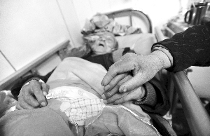 1月11日,92岁的王金贵躺在江苏省人民医院的病床上,他的妻子史秀梅在旁看护着他