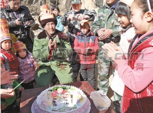 1月26日上午,90多名志愿者来到商州区麻池河镇金林村,给老兵杨德全带去了年画、米面油、被子以及棉衣等爱心物品,志愿者还带来了生日蛋糕为杨德全老人庆贺90岁寿辰。志愿者在杨德全老人家门前贴上了“抗日寇远征异国英雄亮剑爱家乡默守绿林人生无悔”的对联,以此来总结老人一生的功绩。看到志愿者忙忙碌碌地搬东西、贴对联,杨德全老人连称“给大家添麻烦了”。随后,志愿者为老人表演了歌曲、舞蹈等丰富多彩的文艺节目,还给老人包起了饺子,忙碌喜庆的气氛给宁静的小山村带来了蓬勃生机。据了解,志愿者还将此次活动所募集到资金的剩余部分给了老人的邻居,让邻居们帮忙照顾老人。当地村民高兴地说,几十年来,这里从来都没有这么热闹过。